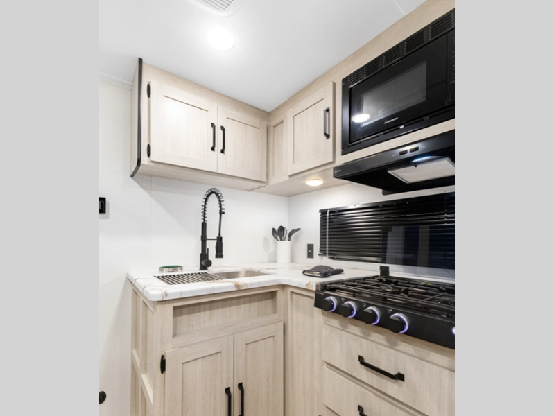 Sleeps 4 Slides 1 Length 22 ft Ext Width 7 ft 6 in Ext Height 10 ft 5 in Hitch Weight 440 lbs GVWR 5130 lbs Dry Weight 3629 lbs Cargo Capacity 1501 lbs Fresh Water Capacity 34 gals Grey Water Capacity 30 gals Black Water Capacity 30 gals Available Beds RV Queen Refrigerator Type 12V Black Glass Cooktop Burners 2 Shower Size 36" x 30" Number of Awnings 1 LP Tank Capacity 20 lbs Water Heater Capacity 6 gal Water Heater Type Gas/Electric AC BTU 13500 btu Awning Info 14' Axle Count 1 Shower Type Standard Similar Floorplans
