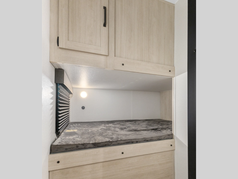 Sleeps 8 Slides 1 Length 23 ft 1 in Ext Width 7 ft 6 in Ext Height 10 ft 5 in Hitch Weight 515 lbs GVWR 5615 lbs Dry Weight 4159 lbs Cargo Capacity 1456 lbs Fresh Water Capacity 34 gals Grey Water Capacity 30 gals Black Water Capacity 30 gals Number Of Bunks 2 Available Beds RV Queen Refrigerator Type 12V Black Glass Cooktop Burners 2 Shower Size 24" x 40" Number of Awnings 1 LP Tank Capacity 20 lbs Water Heater Capacity 6 gal Water Heater Type Gas/Electric AC BTU 13500 btu Axle Count 1 Shower Type Standard Similar Floorplans